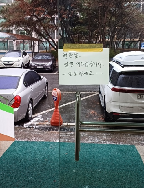 현관 앞이 얼마나 미끄러운지